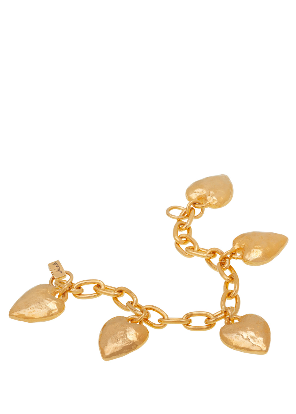 18k gold plated heart bracelet on cable chain. Charm Length: 1"