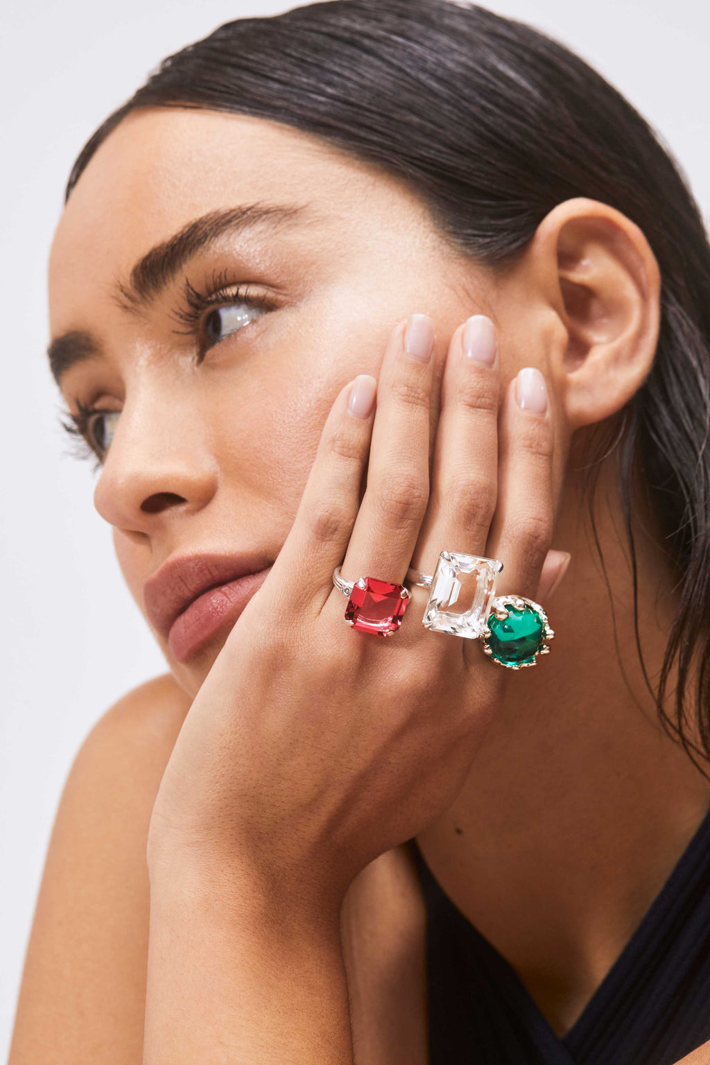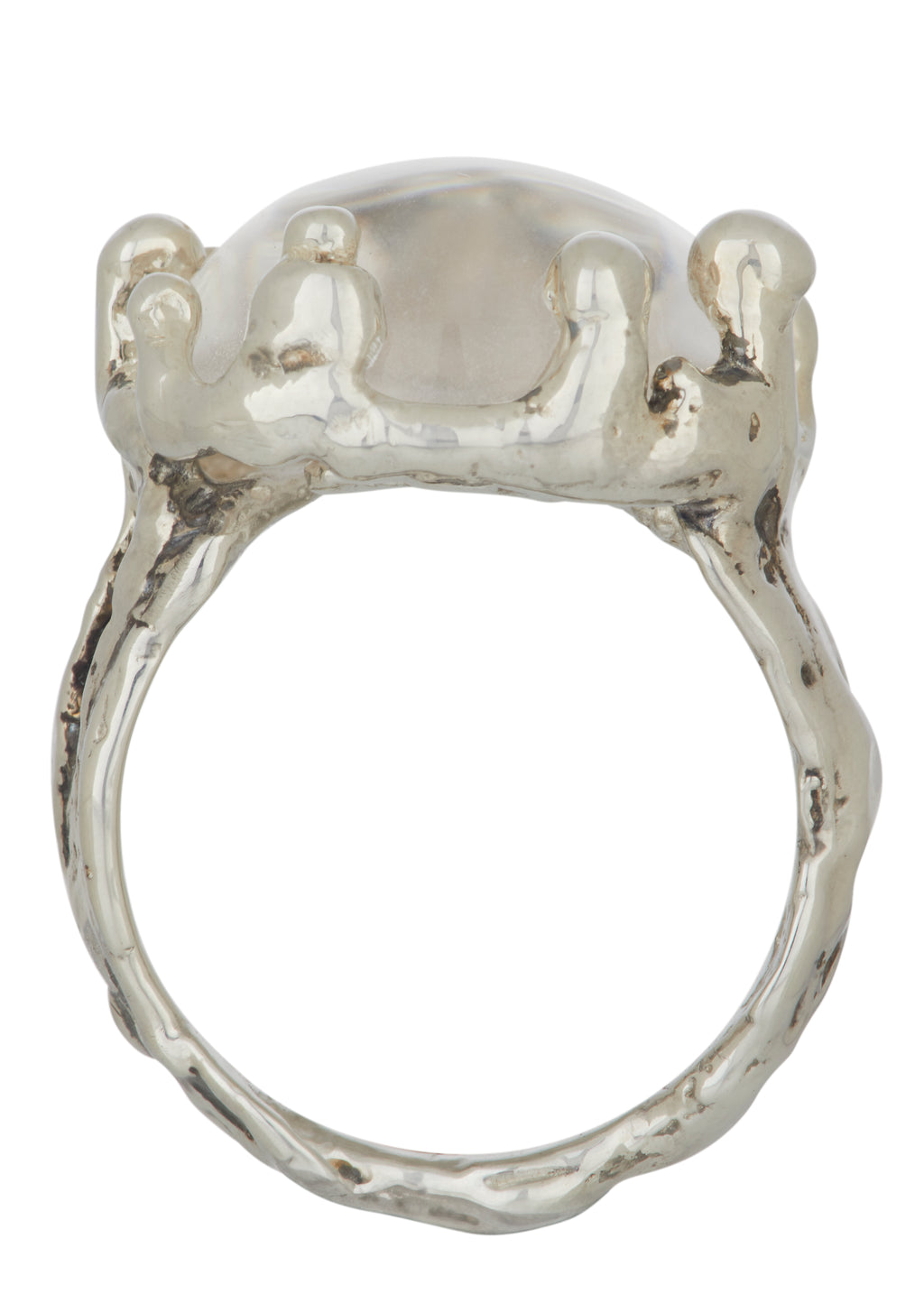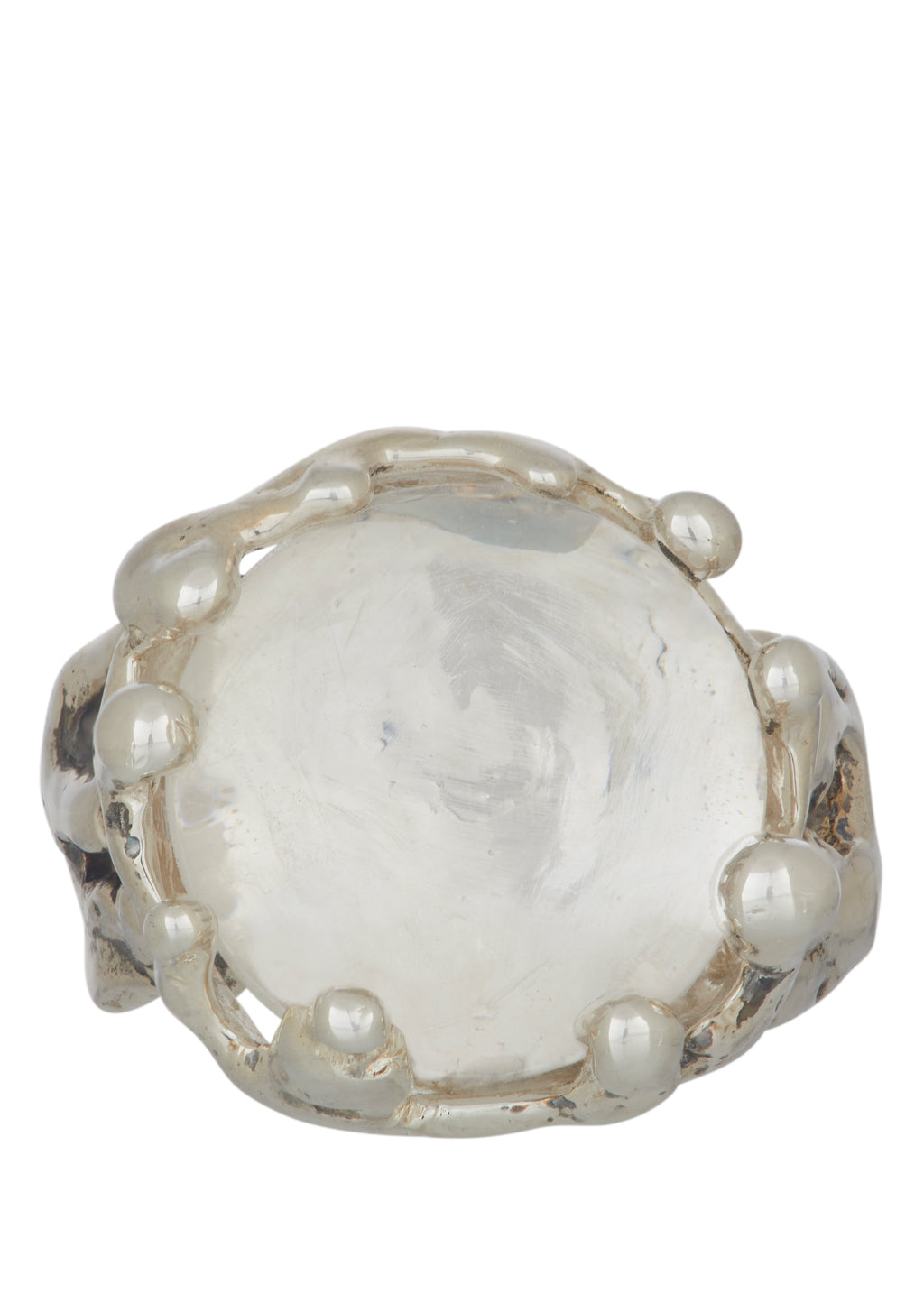 Sterling silver ring set with a clear glass stone. Stone is 15 mm.