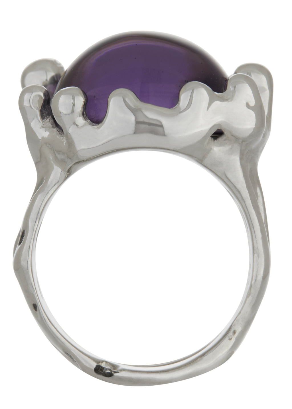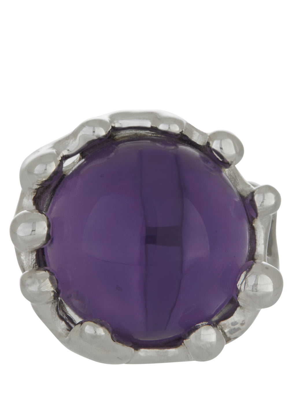 Sterling silver ring set with a clear glass stone. Stone is 15 mm.