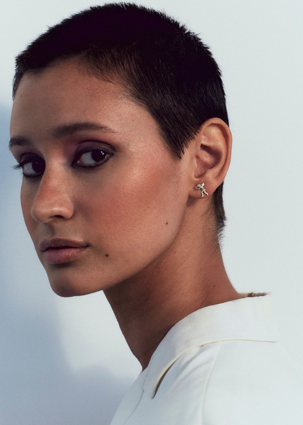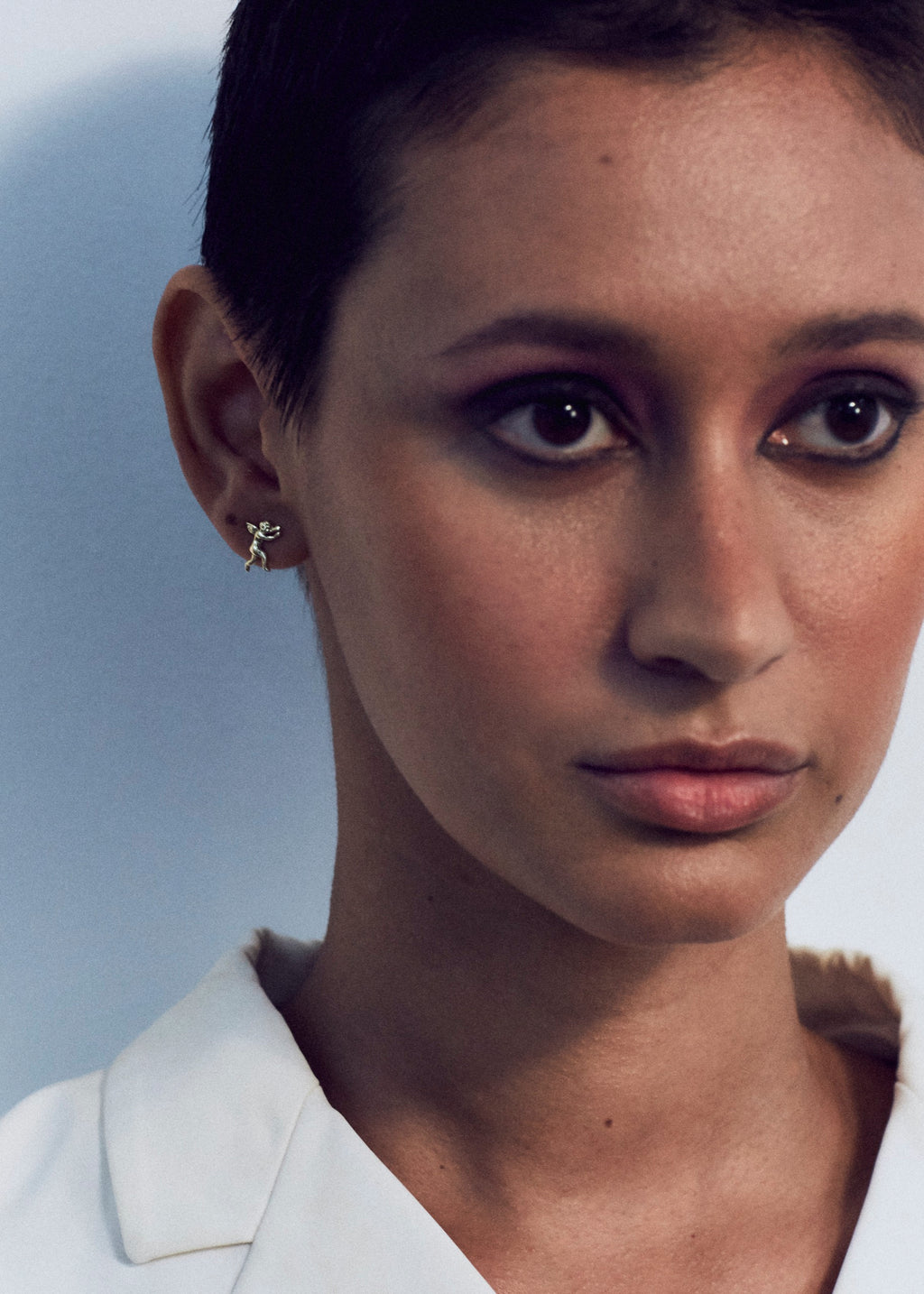 In the Greek myth of Eros and Psyche, two lovers who have been separated must find their way back to each other. Desire and Soul are connected through trials of trust. A lovely obstacle, a lusty tribulation. Pair of earrings in sterling silver.