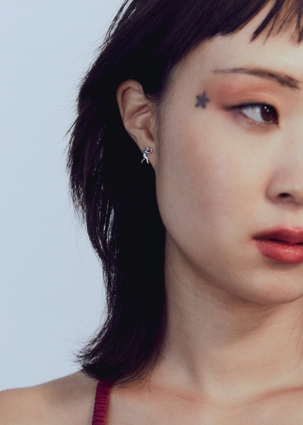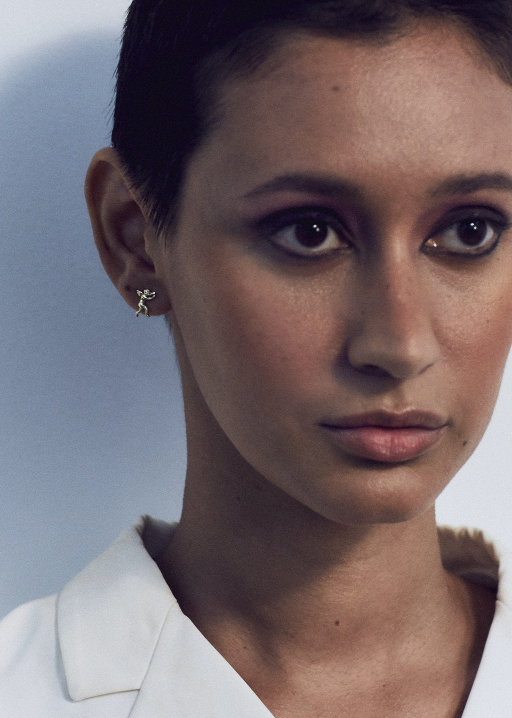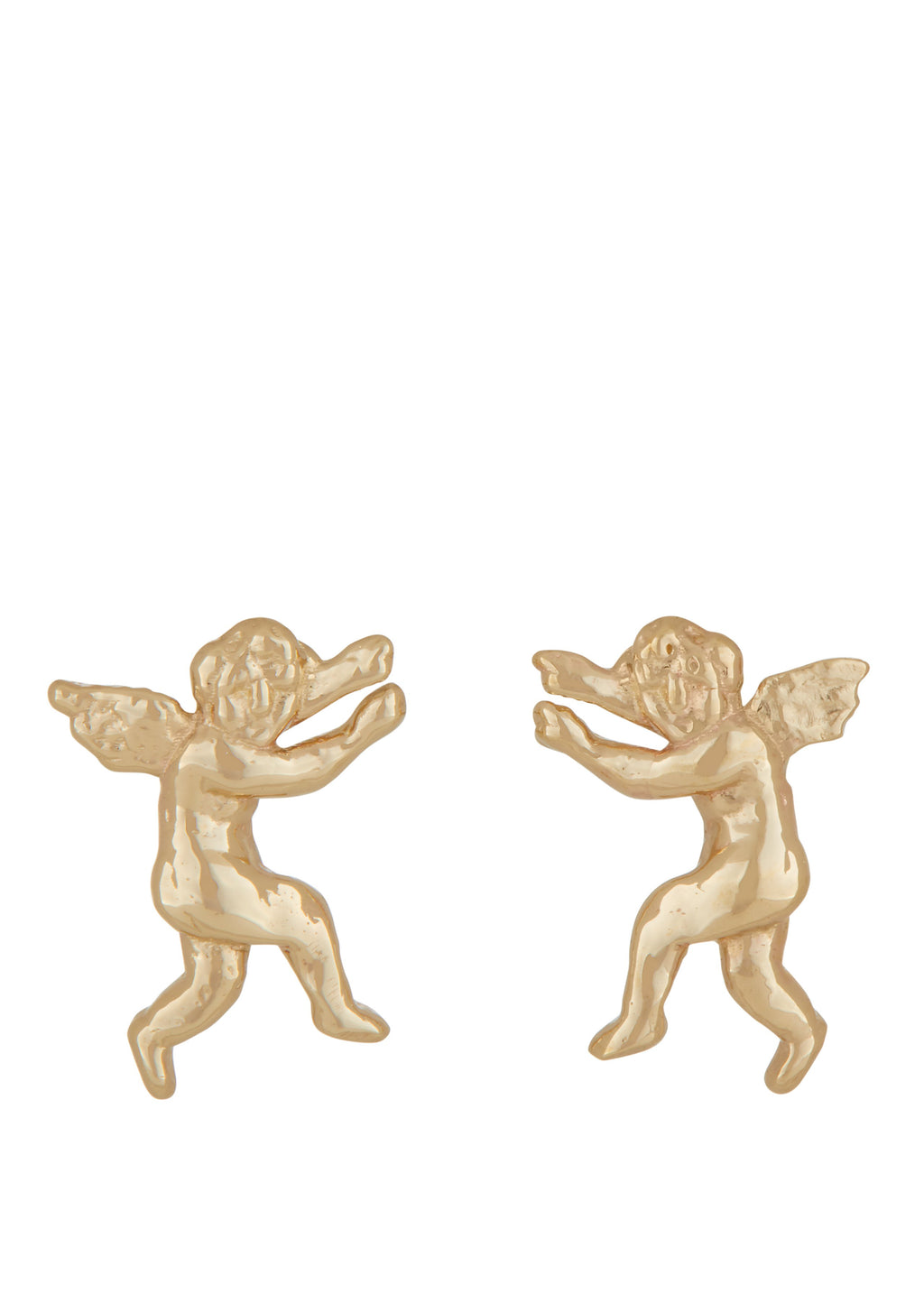 In the Greek myth of Eros and Psyche, two lovers who have been separated must find their way back to each other. Desire and Soul are connected through trials of trust. A lovely obstacle, a lusty tribulation. Pair of earrings in 14k gold.