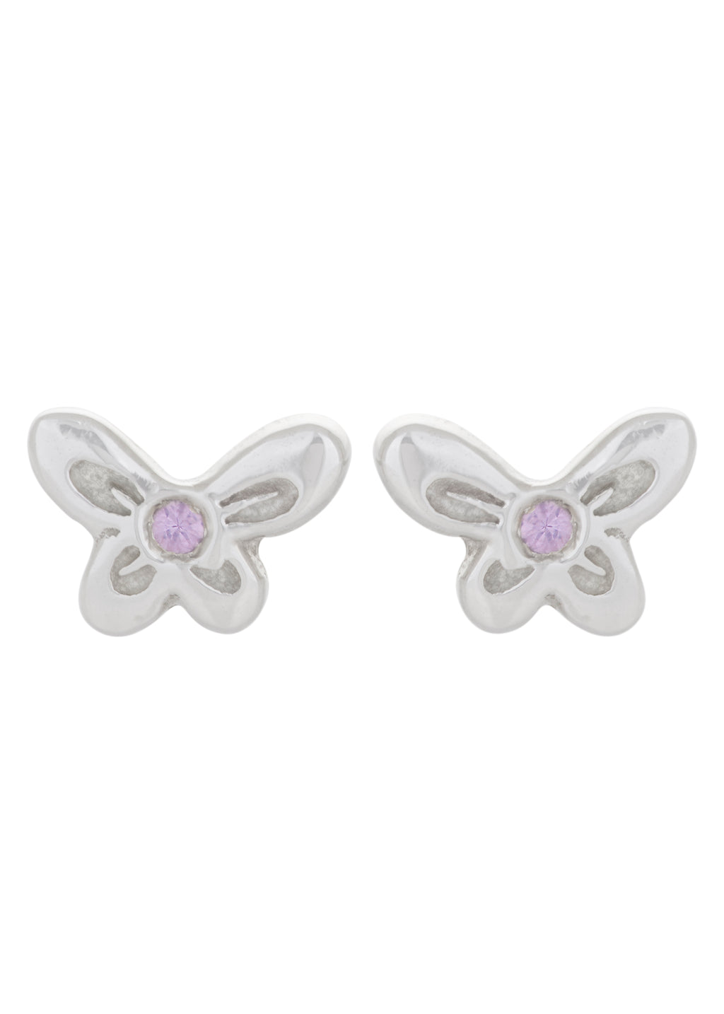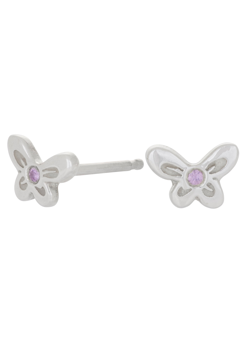 .925 sterling silver butterfly stud earrings with pink sapphires.
