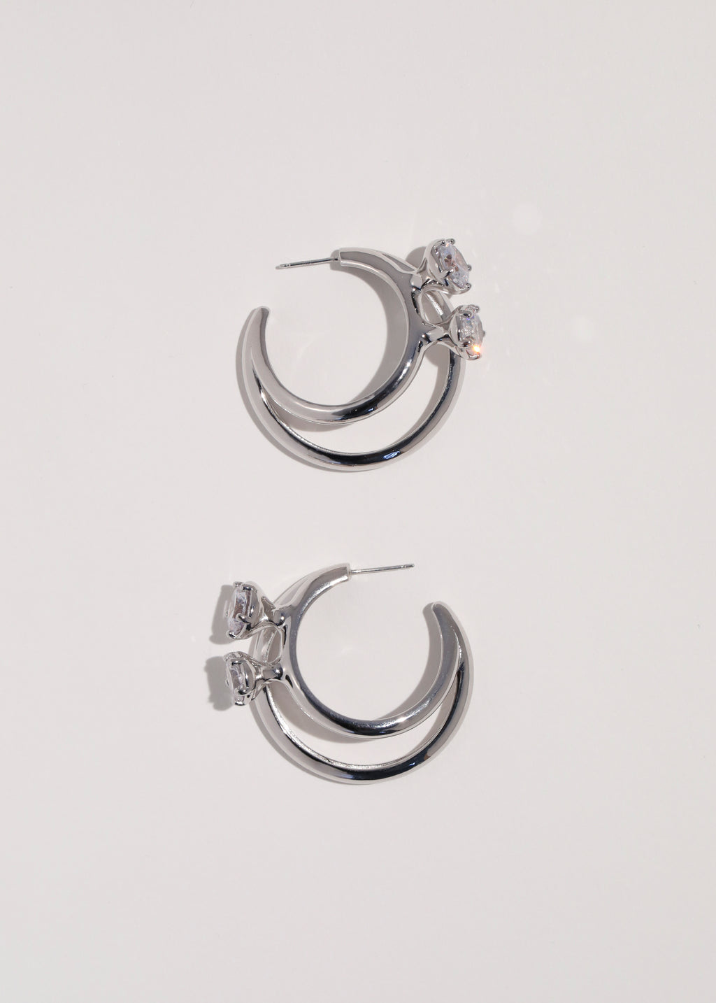 Pair of high polished white bronze earrings set with cubic zirconias.