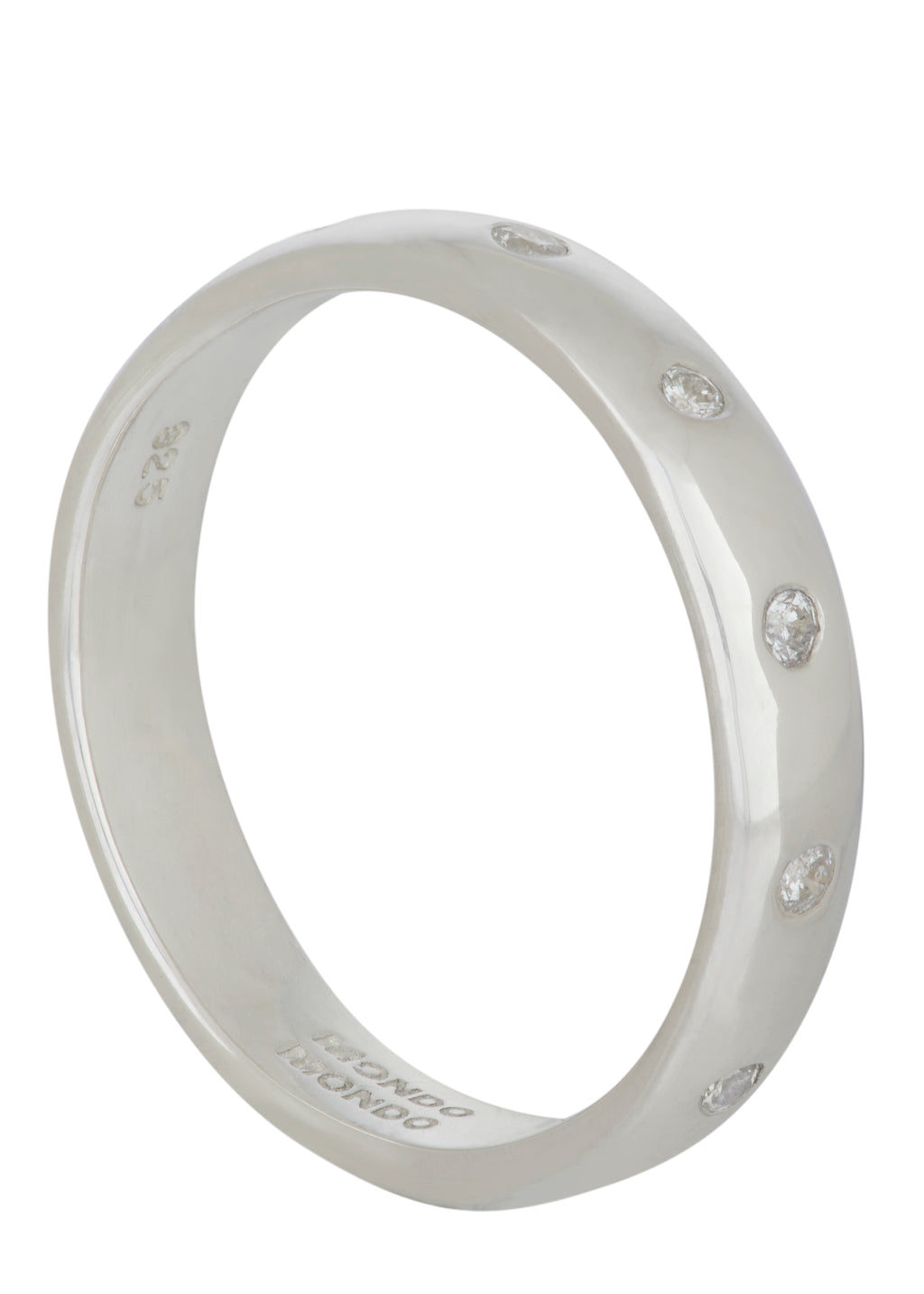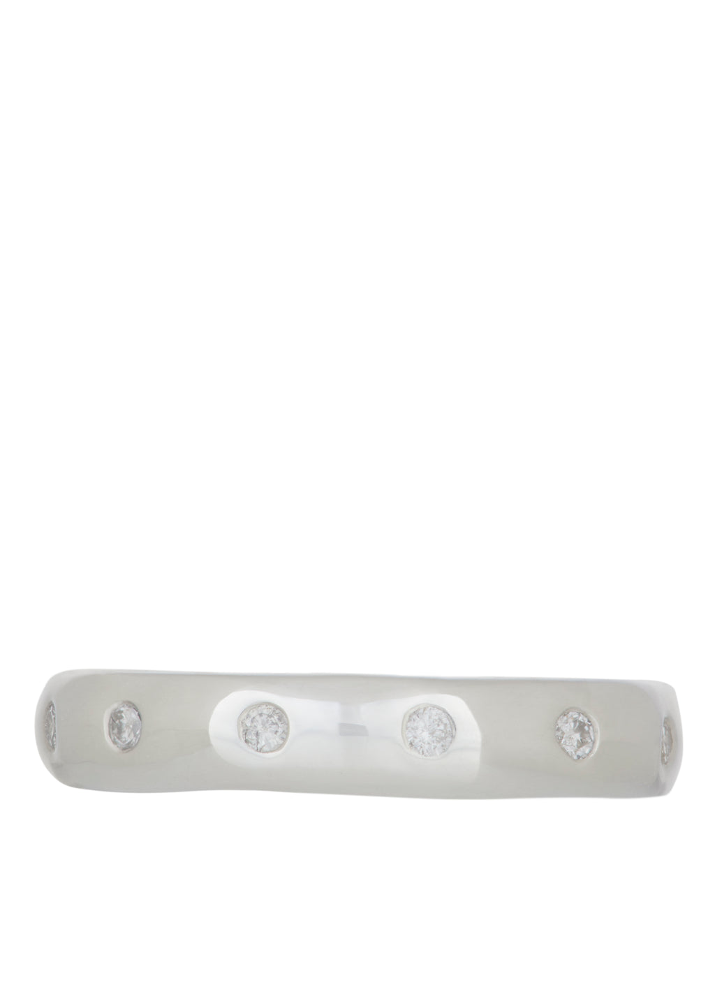 Sterling silver eternity band set with diamonds.