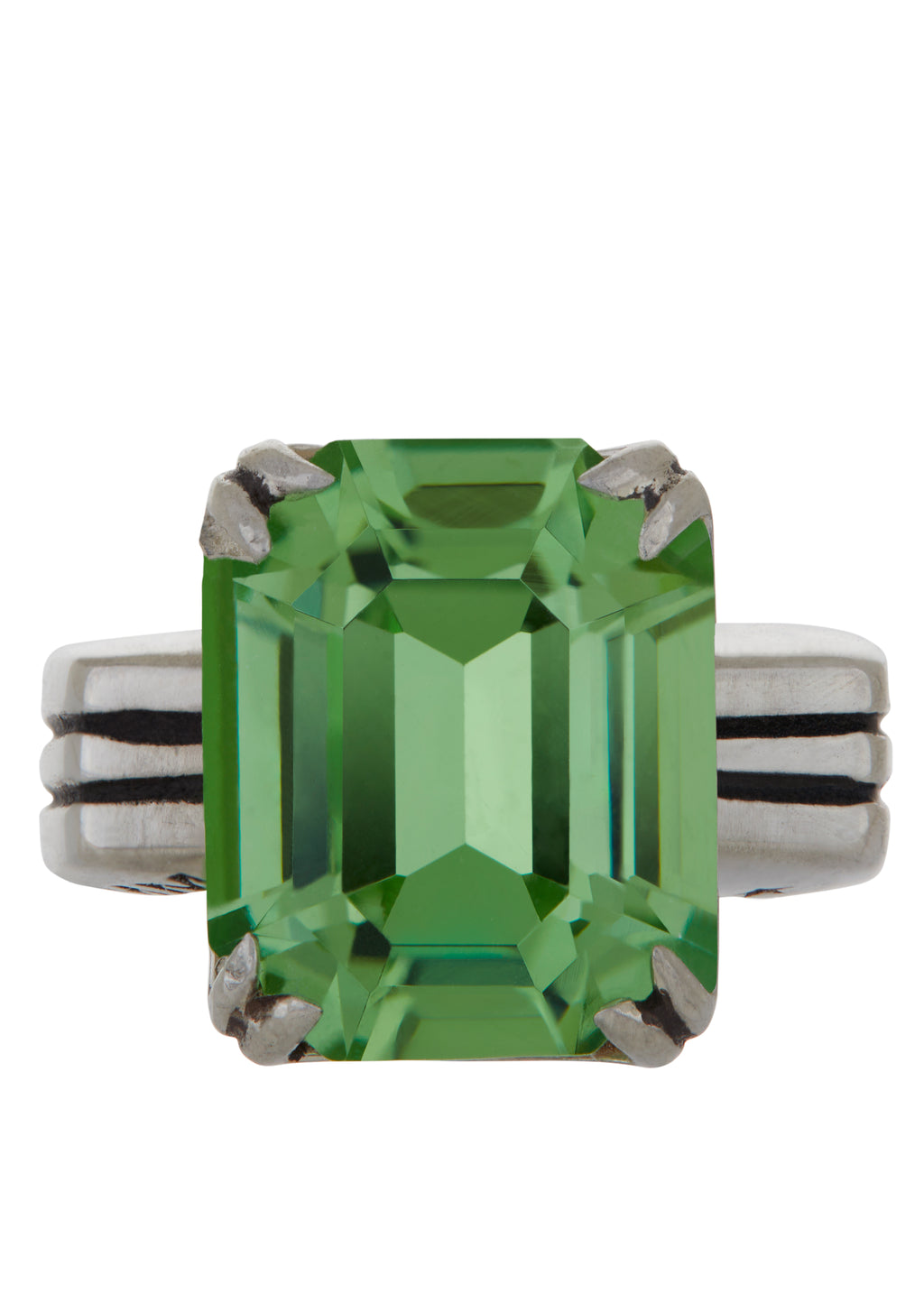 Sterling silver ear cuff with custom, hand-cut 8*10mm glass stone in pointed-prong setting with ornate details.