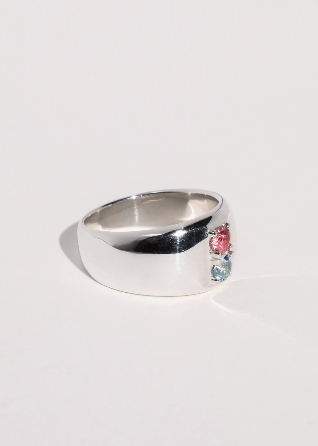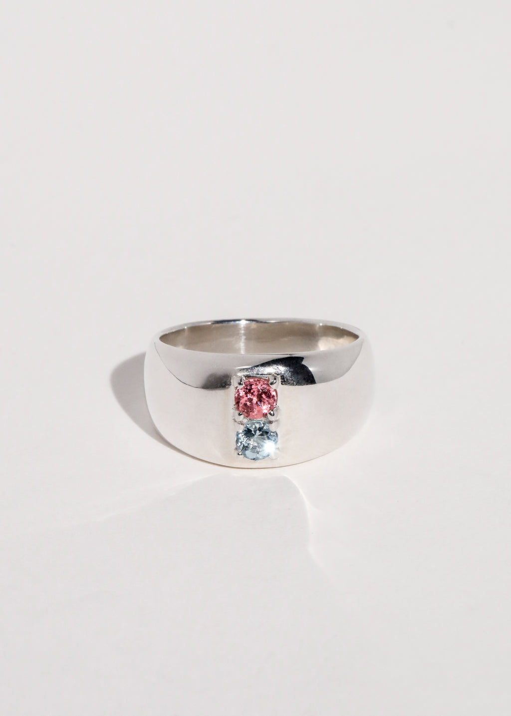 Radio Ring in Sterling Silver - Pink Tourmaline/Aquamarine