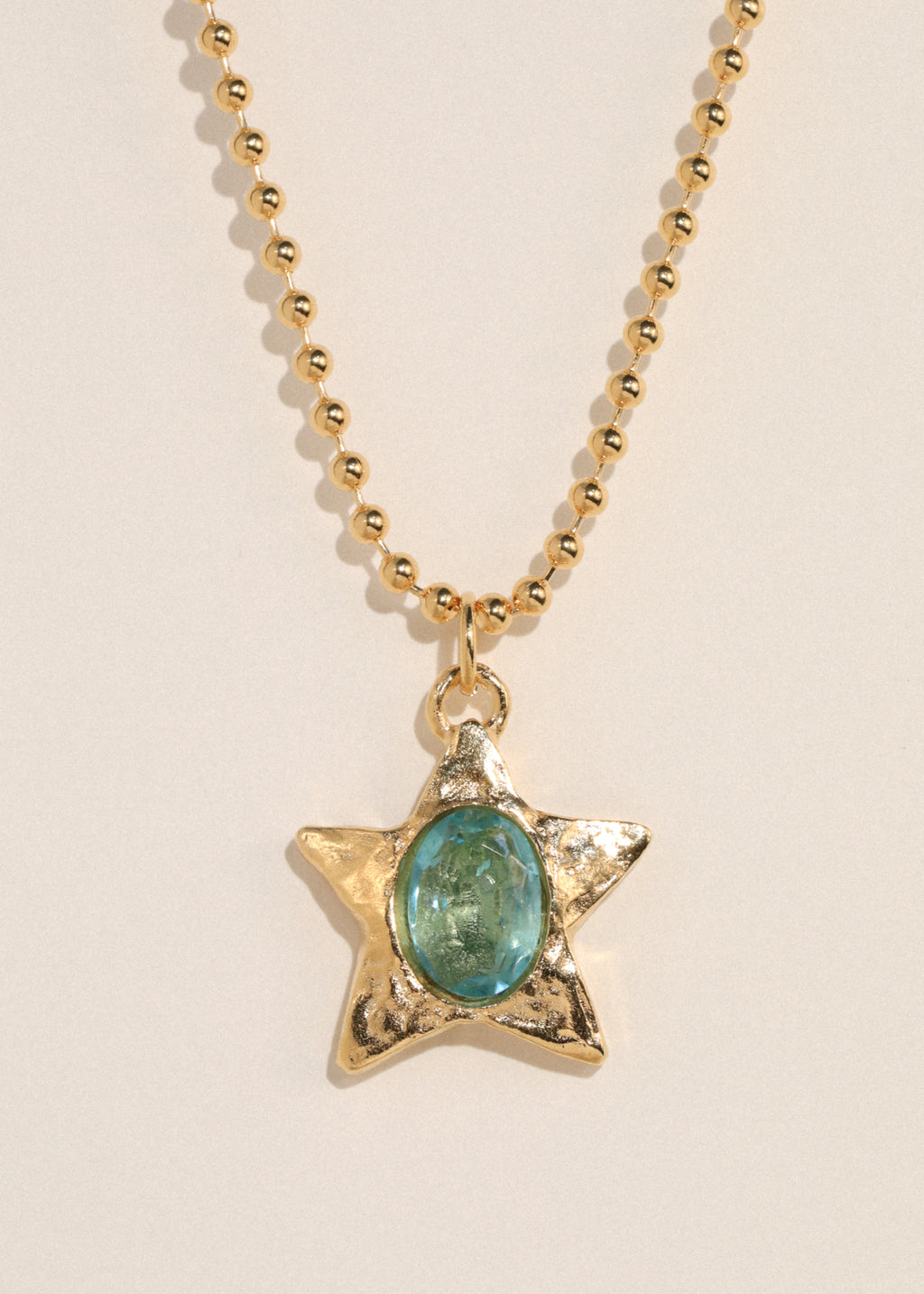 18k gold plated star pendant with glass stone on ball chain.