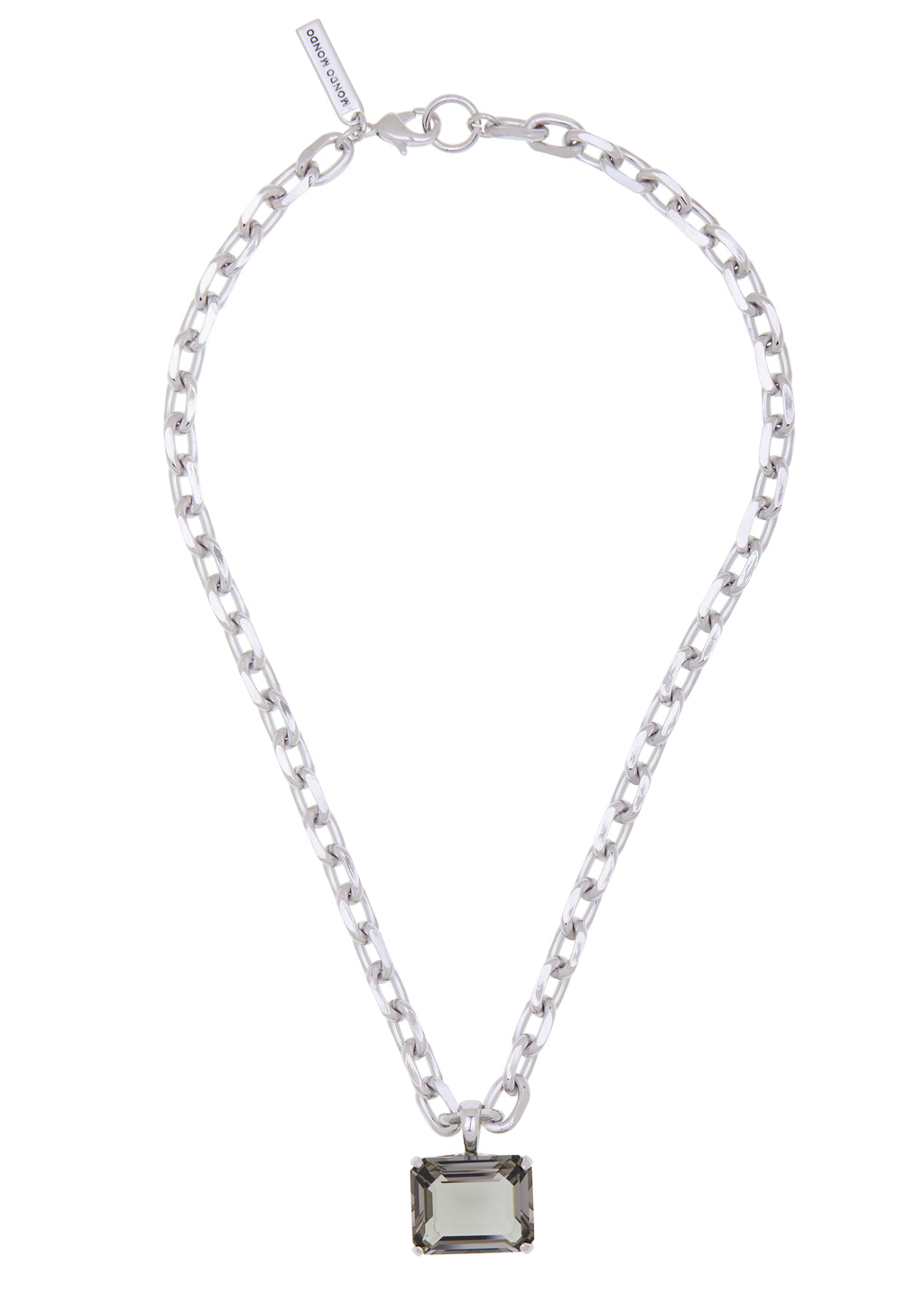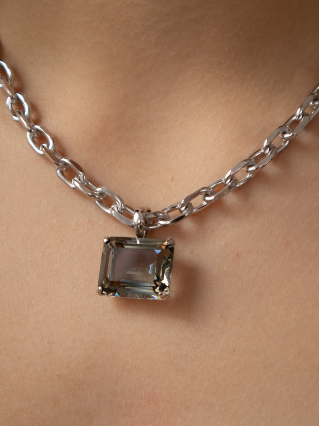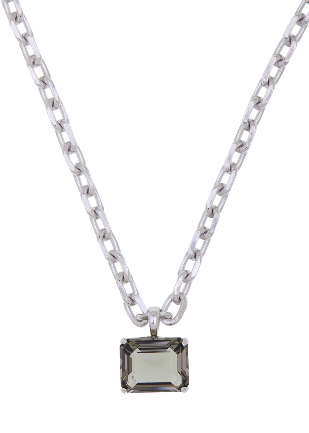 Silver pendant necklace set with 20*16mm clear glass stone on diamond-cut chain.