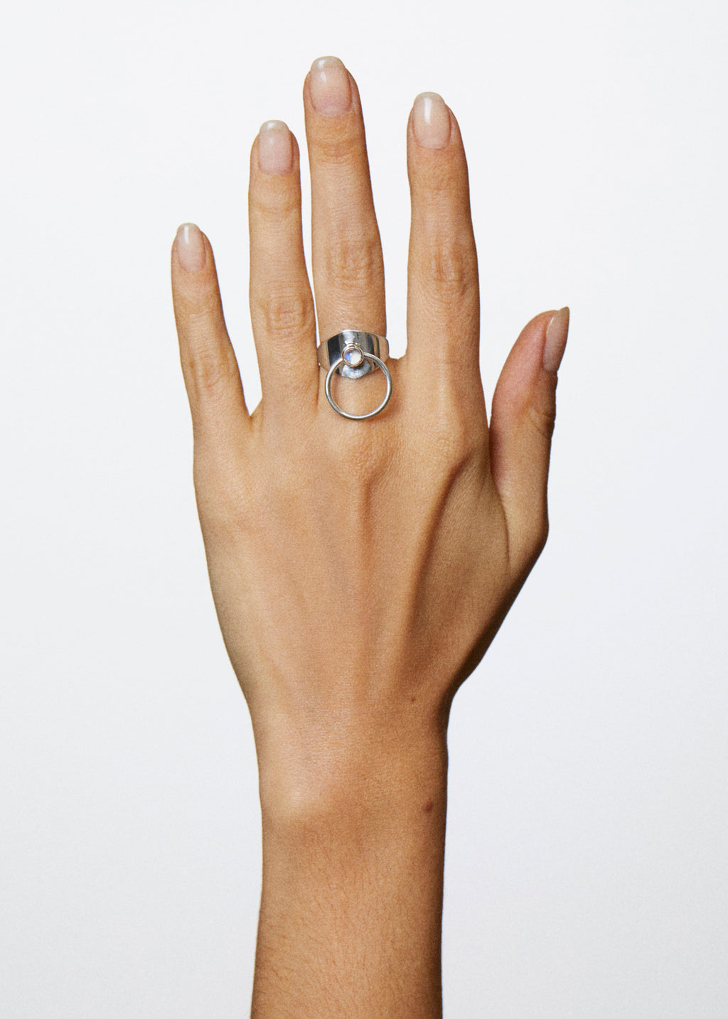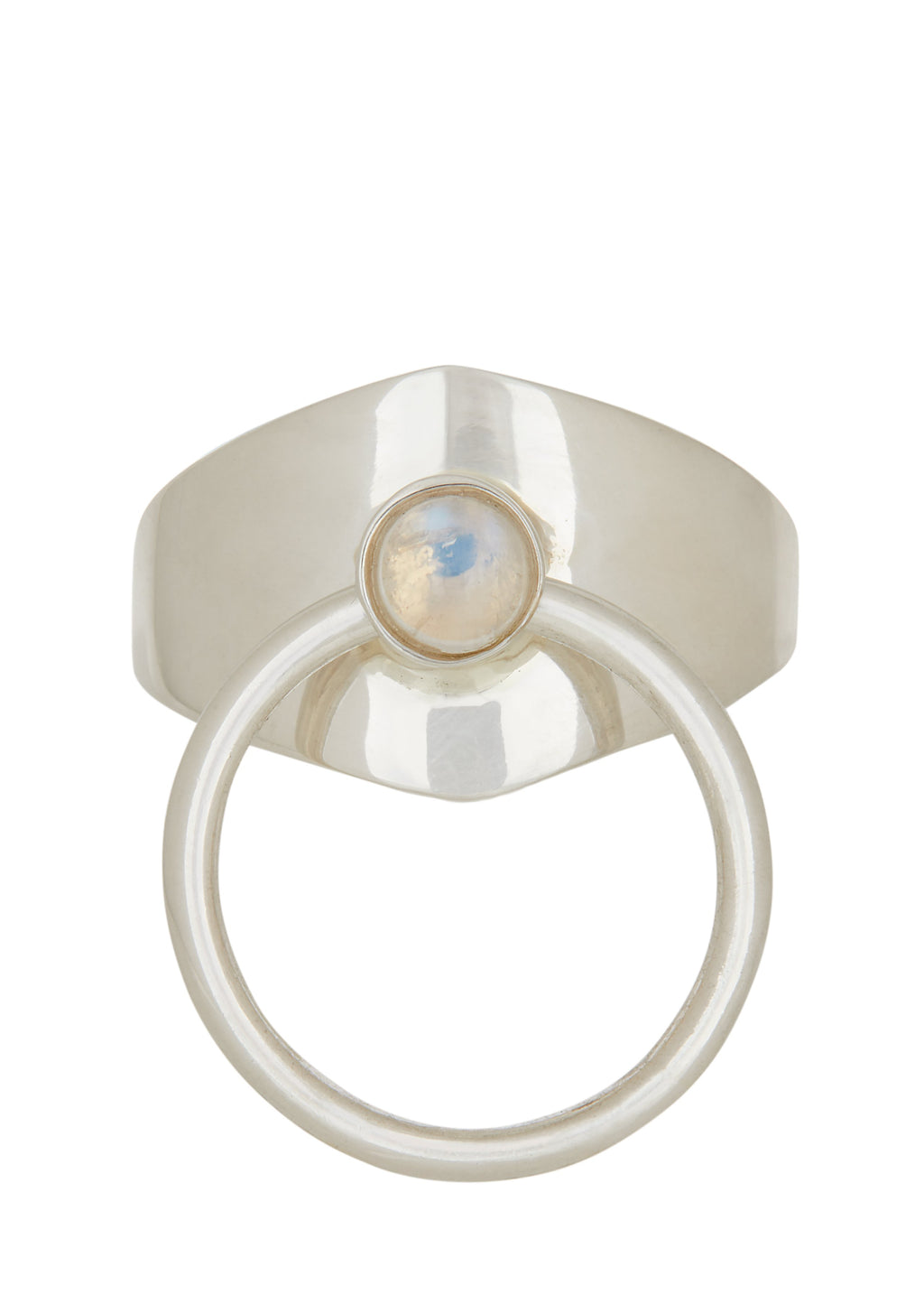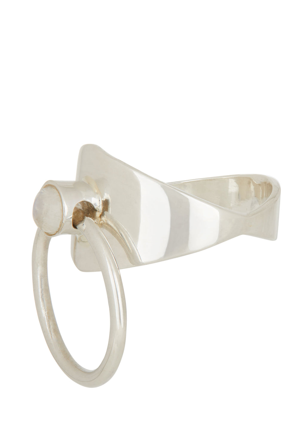Our classic kinetic ring in sterling silver and moonstone cabochon.