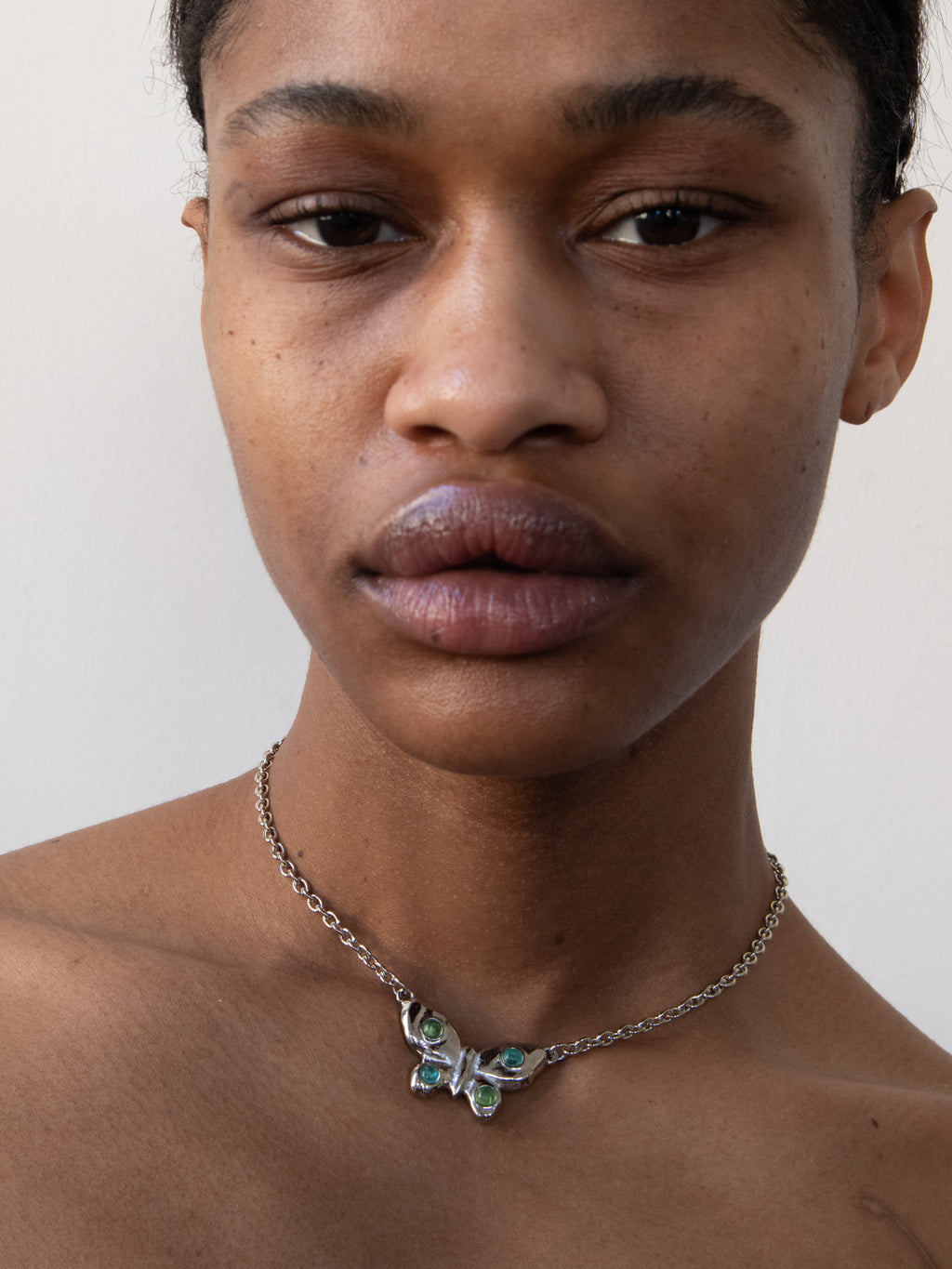Tropicana Butterfly Necklace in Silver - Iguana/Lizard