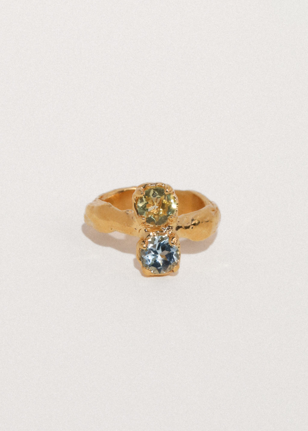 18k gold plated .925 sterling silver ring with 6mm blue topaz and lemon quartz