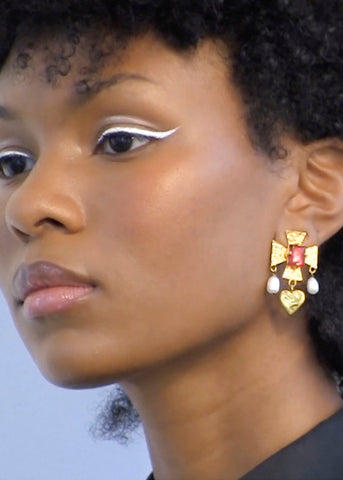 Materials: 18k gold plated brass, glass stones, pearls, sterling silver ear post