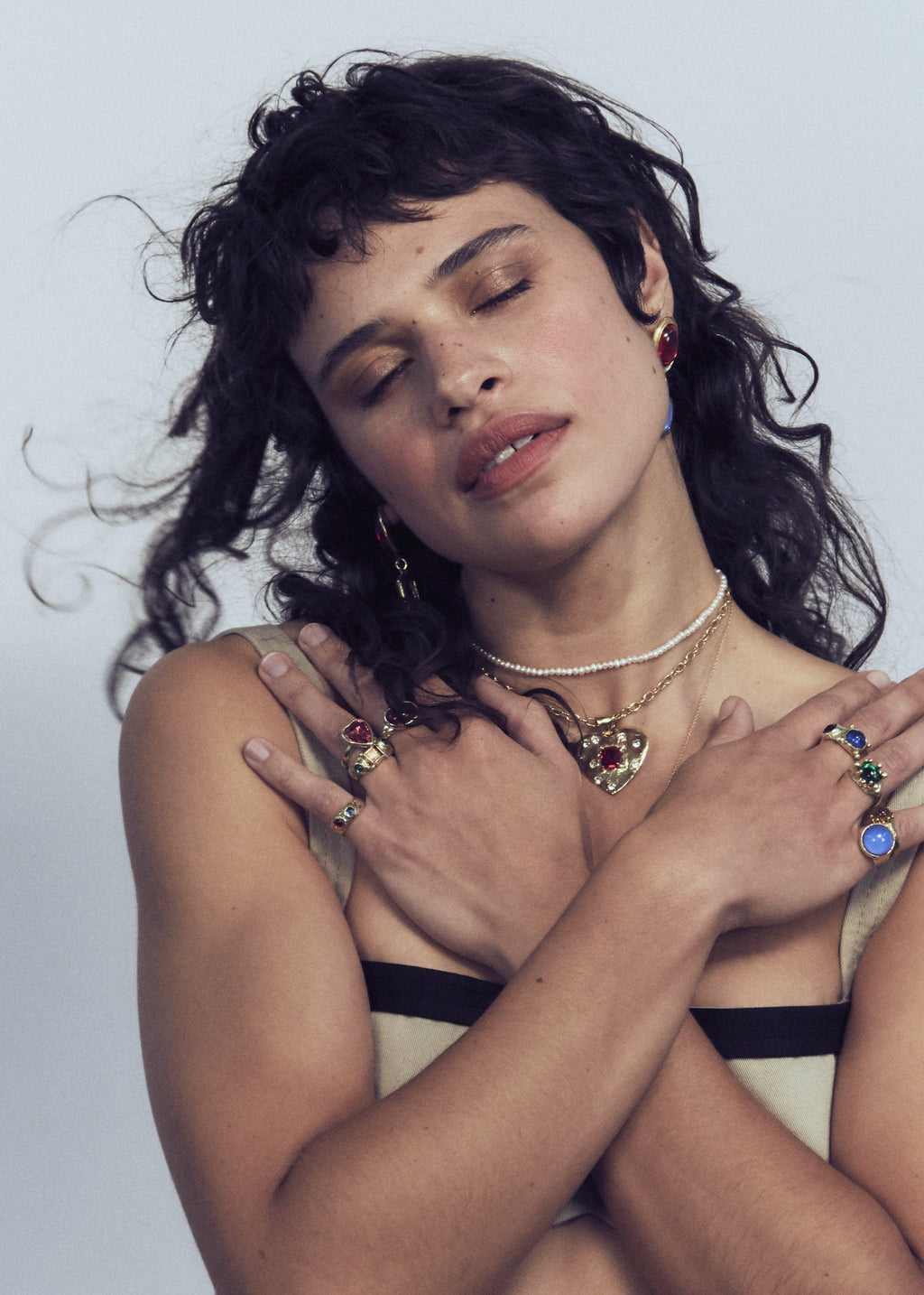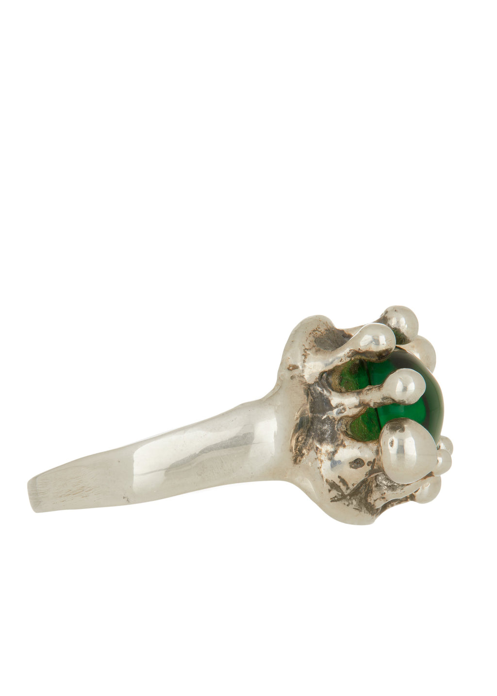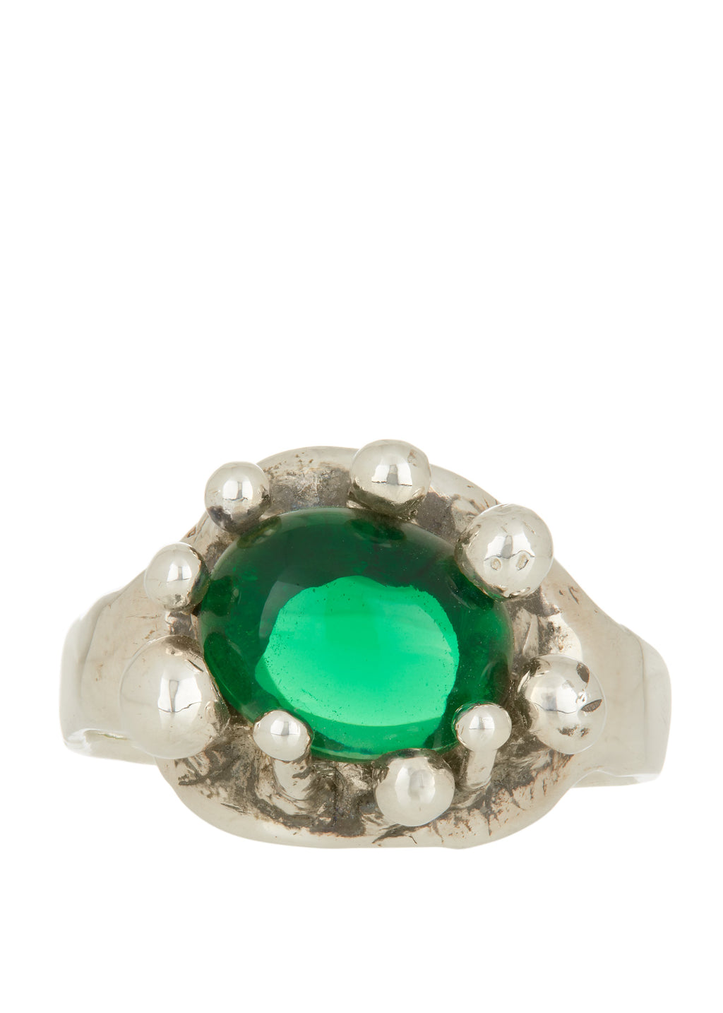 Materials: sterling silver, green glass cabochon