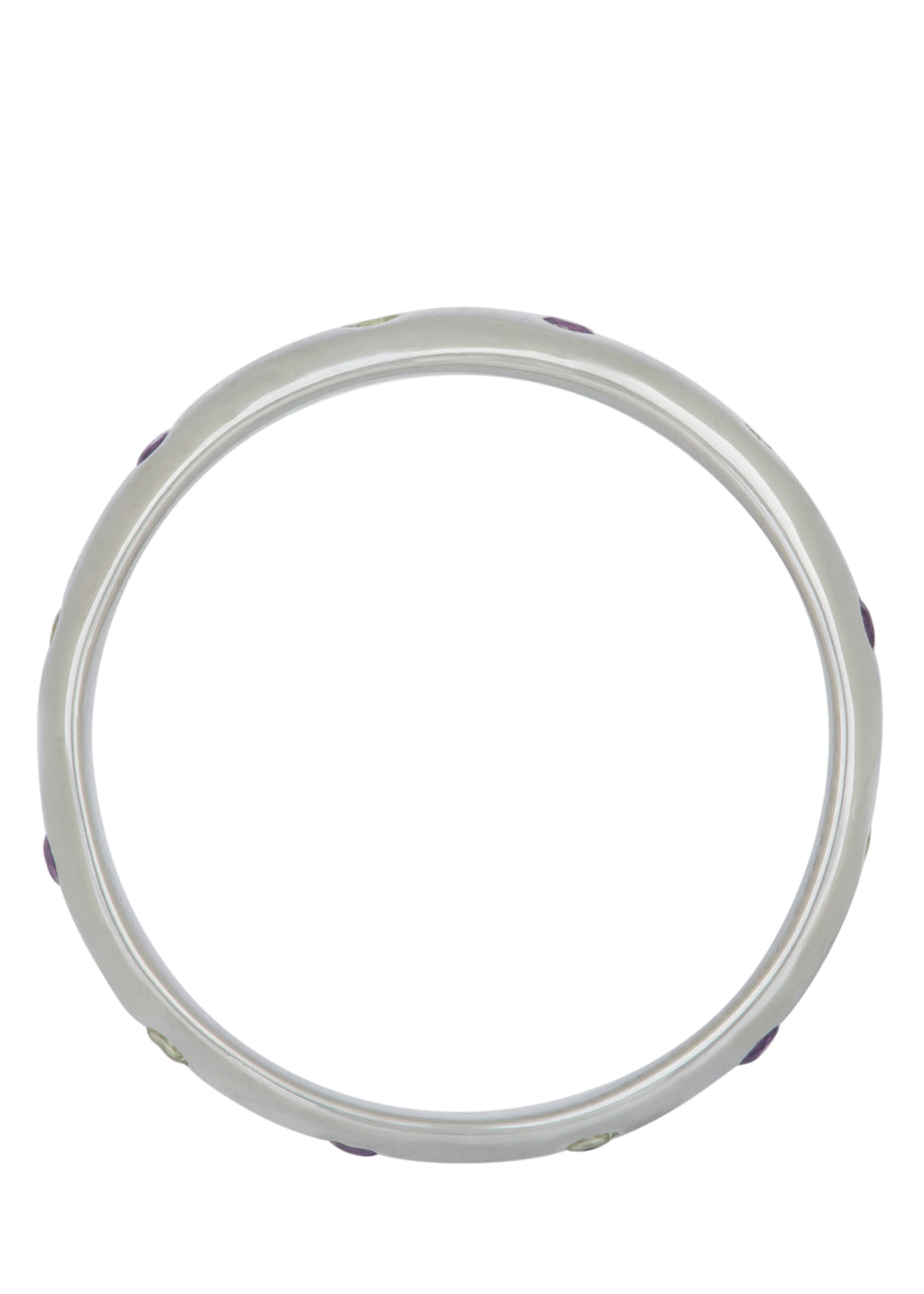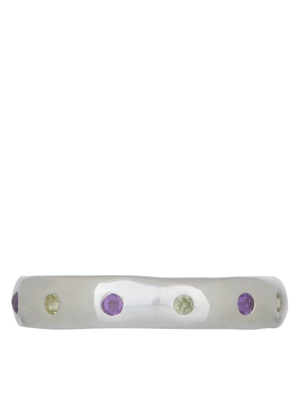 Sterling silver eternity band set with alternating amethyst and peridot.